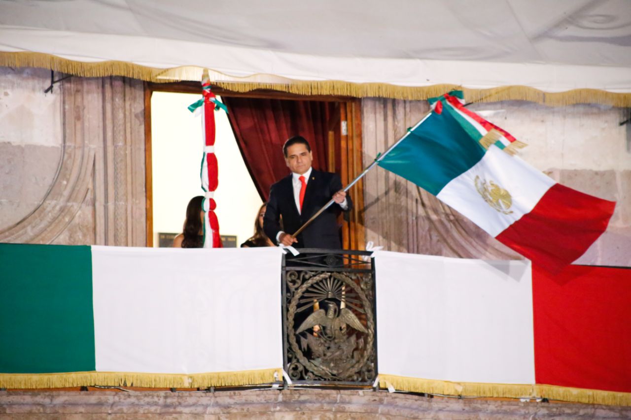 A las 22:54 horas, Silvano Aureoles encabezó el acto cívico, con los honores a la Bandera a cargo de la escolta y Banda de Guerra del 12º Batallón de Infantería asignado a la 21 Zona Militar, marco en el que entregaron al mandatario estatal la Bandera Nacional.
