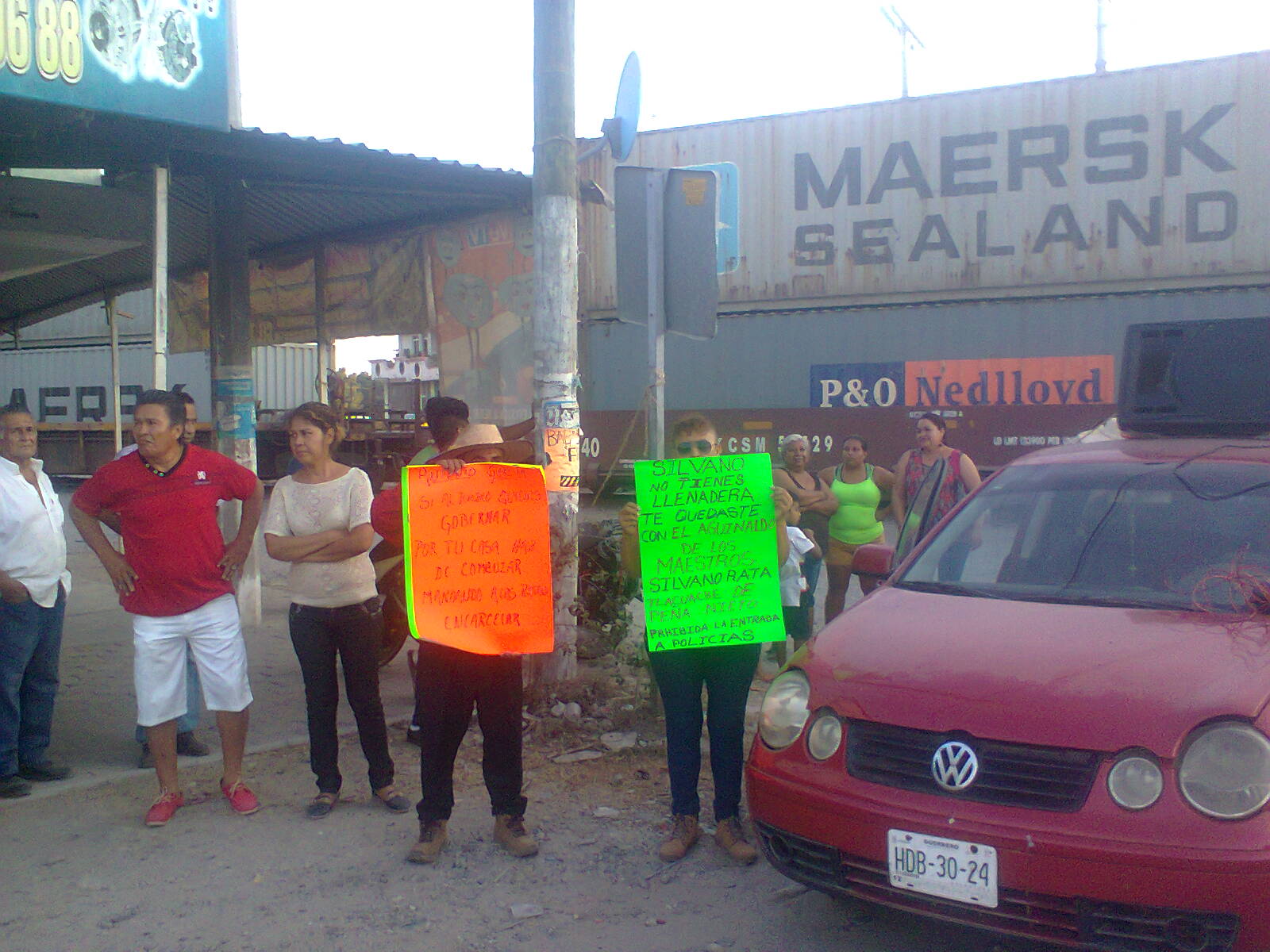 LÁZARO CÁRDENAS, MICH.-Maestros de la Coordinadora Nacional de Trabajadores de la Educación (CNTE) impidieron que se desarrollara el mitin de campaña de precandidato al PRD en el Senado, Antonio García Conejo, en este municipio de Lázaro Cárdenas de la región Costa, los manifestantes con mantas y pancartas pidieron que se realicen los pagos por parte del Gobierno de Michoacán de los adeudos en prestaciones y en pagos pendientes del 2017.