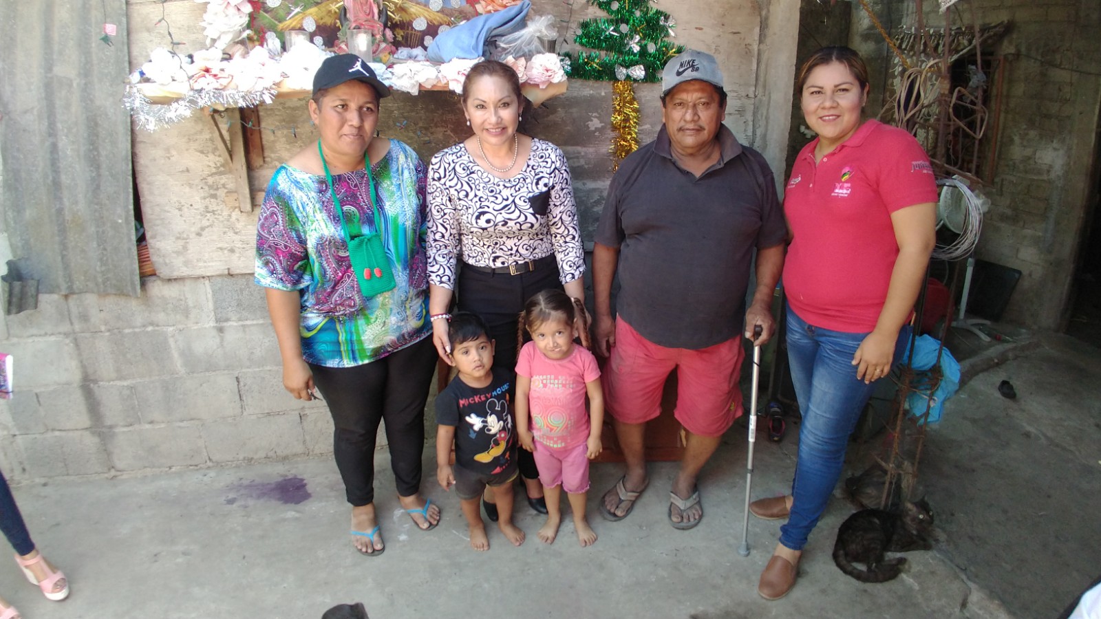 Lupita Chan y su equipo también acudieron a la colonia Tinoco Rubí, donde entregaron un bastón al señor José Antonio Castañeda Candela.