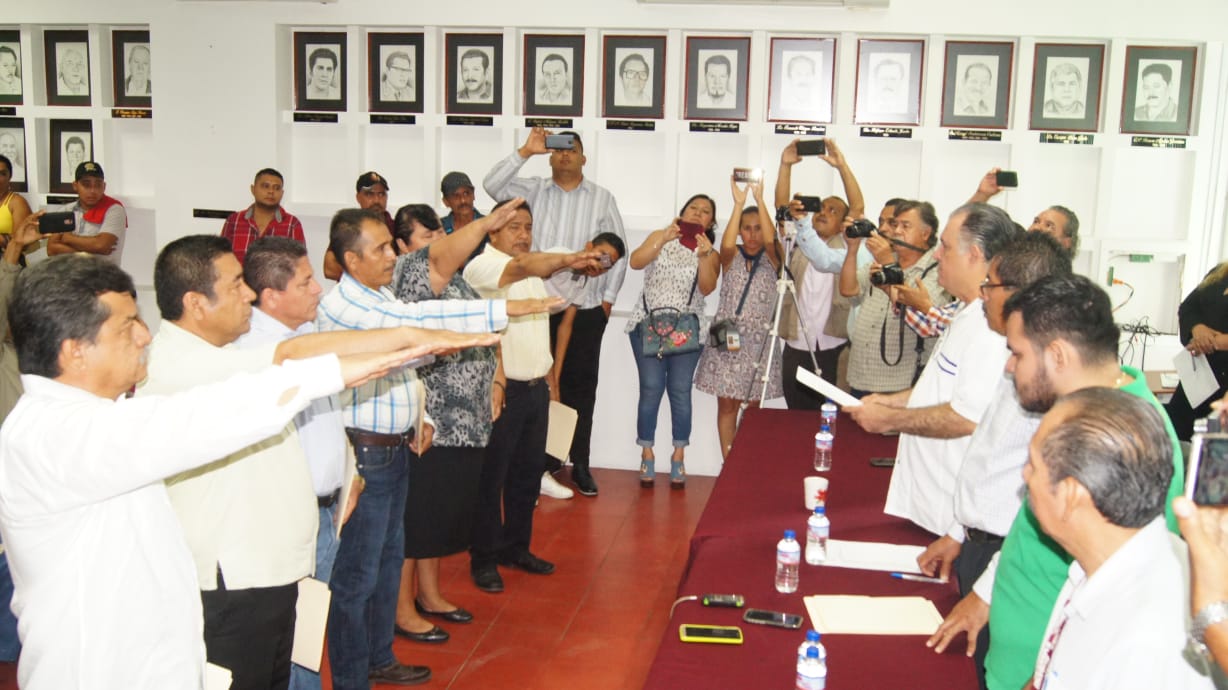 En el evento celebrado en la Sala de Cabildo en la que se contó con la presencia de los regidores Oscar Daniel de la Peña Carmona y Felimón Acosta Aguirre; el Síndico Municipal, Miguel Ángel Peraldí Sotelo, les tomó protesta primeramente a los Jefes de Tenencia; por Buenos Aires, Vicente Solano Solano; La Mira, Dionisio Rosales Peñaloza; Playa Azul, Hilario Echevarría García; Caleta de Campos, Pedro Barragán Farías; el Habillal, Norma Elena Carmona Acegueda y por Las Guacamayas, Abel Toledo Serrano.