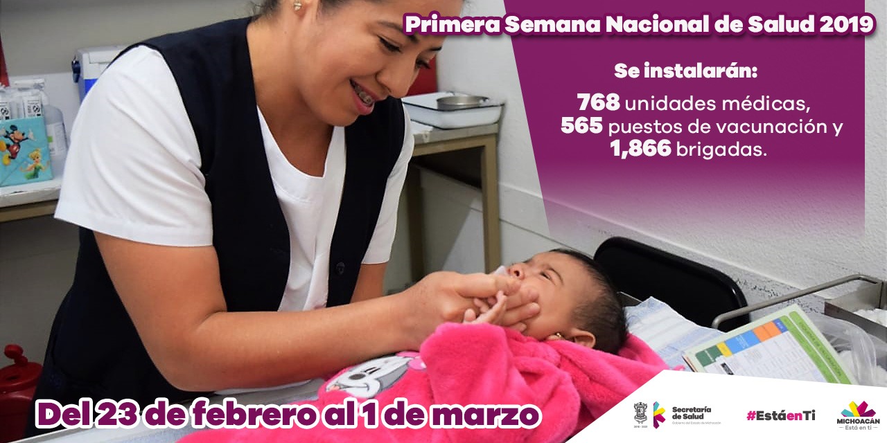 Morelia, Michoacán, a 12 de febrero de 2019.- A través de la Secretaría de Salud de Michoacán (SSM), este 25 de febrero arrancará de manera oficial la Primera Semana Nacional de Salud 2019, bajo el lema “Por el bienestar de tu familia y México, vacúnalos”.