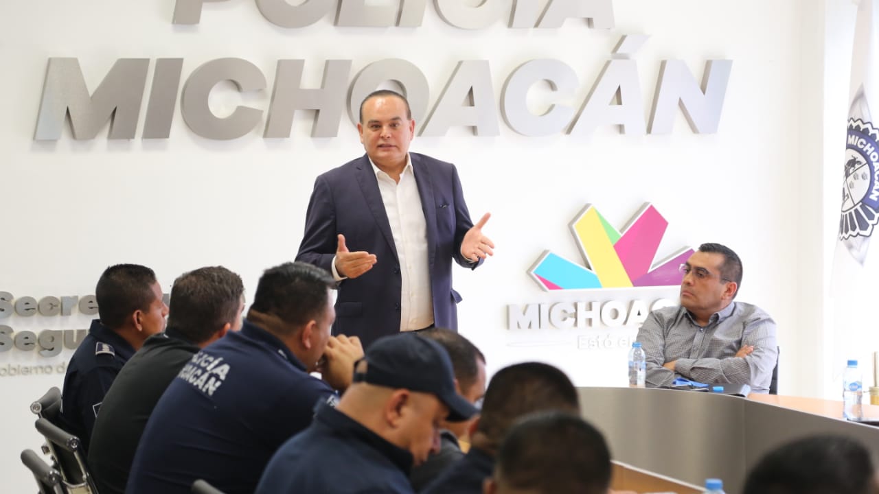 Morelia, Michoacán, a 28 de abril de 2019.- El titular de la Secretaría de Seguridad Pública (SSP), José Martín Godoy Castro, sostuvo una reunión con los comandantes regionales del Estado, en la que se analizaron las condiciones de trabajo, equipamiento y las mejoras que se pretenden realizar, con total respeto a los derechos laborales del personal de la institución, a fin de brindar un mejor servicio a las y los michoacanos.
