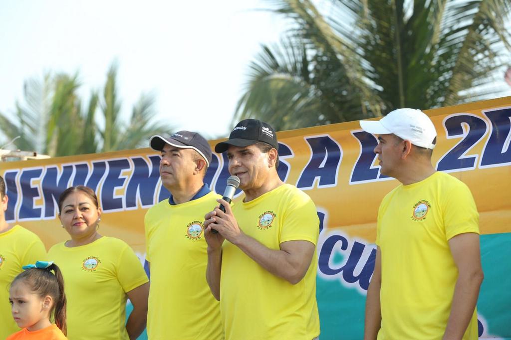 Al sumarse a la activación física en Playa Eréndira, el mandatario estatal felicitó a las madres y los padres de familia por participar en este tipo de actividades recreativas con sus hijos, ya que logran captar la atención de las y los niños para fomentar valores en la formación de los futuros ciudadanos.