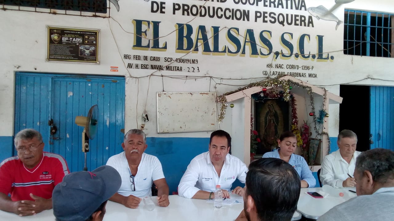 LÁZARO CÁRDENAS, MICH.- Durante su gira de trabajo por este municipio del Puerto de Lázaro Cárdenas, el Secretario de Gobierno del Estado, se reunió con pescadores a quienes le hizo saber que este sector será potencializado y sus necesidades serán atendidas a la brevedad, con el fin de impulsar el desarrollo económico, Carlos Herrera Tello, en compañía de la jefa Regional, y el Delegado Regional de Compesca sostuvo un encuentro con los integrantes de la Sociedad Cooperativa de Producción Pesquera, “El Balsas”.