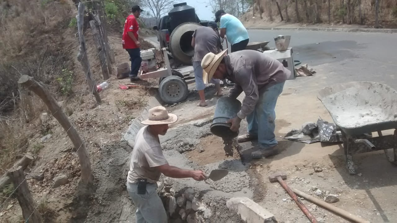 CD. LÁZARO CÁRDENAS, MICHOACÁN, A 20 DE JUNIO DEL 2019.- Sumando esfuerzos, la Administración municipal que preside María Itzé Camacho Zapiain y habitantes de la comunidad de El Colomo realizaron el bacheo y reparación de una cuneta situada en el acceso a la comunidad.