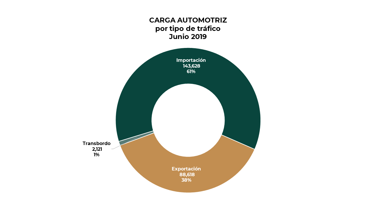 De este resultado, de las importaciones se creció un 2% al ser atendidas 143 mil 628 unidades contra las 140 mil 218 manejadas en el año anterior. Por otra parte, las exportaciones crecieron un 10% al embarcarse 88 mil 528 unidades contra 80 mil 683 autos del periodo del 2018. Para transbordos se manejaron dos mil 211 autos.