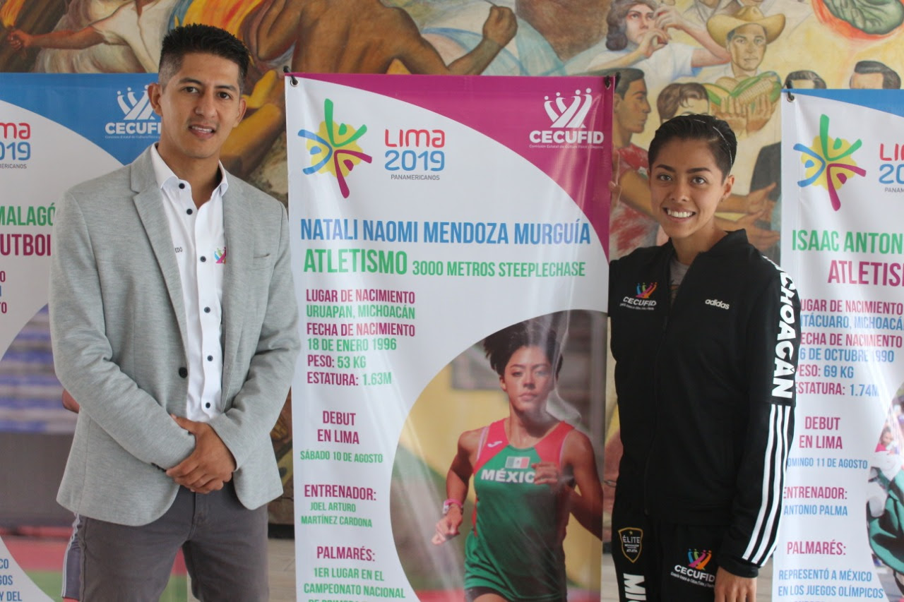 Jorge Abdiel Díaz Acevedo, director de la Comisión de Cultura Física y Deporte (Cecufid), despidió y entregó los apoyos a la deportista uruapense de 23 años de edad, quien dará la cara por México en la prueba de 3 mil metros con obstáculos, el próximo sábado 10 de agosto.