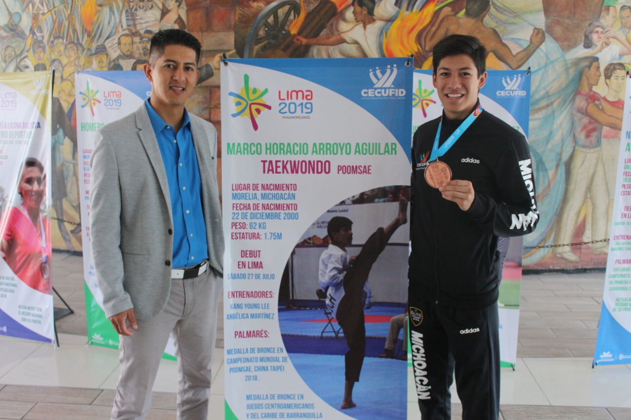 • Jorge Abdiel Díaz Acevedo, director general de Cecufid, felicitó al artemarcialista nacido en Morelia que dio a México su primera medalla en estos Juegos Panamericanos