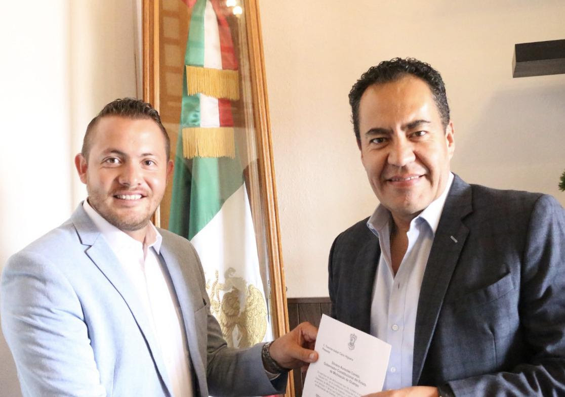 Morelia, Michoacán, a 5 de agosto del 2019.- Con la representación del Gobernador Silvano Aureoles Conejo, el secretario de Gobierno, Carlos Herrera Tello, entregó el nombramiento a Gerardo Olloqui Estrada, como nuevo titular del Instituto de la Juventud Michoacana (Ijumich).