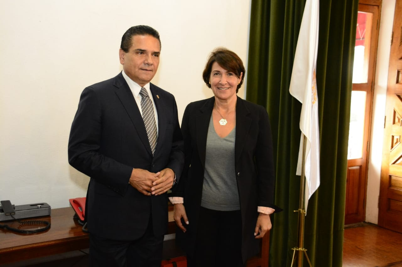 Morelia, Michoacán a 18 de octubre de 2019.- Con la finalidad de estrechar lazos de hermandad y trabajo conjunto entre Michoacán y Francia, el Gobernador Silvano Aureoles Conejo se reunió este viernes con la Embajadora del país europeo en México, Anne Grillo, a quien compartió las ventajas competitivas que posee la entidad en los sectores productivo, comercial y turístico.