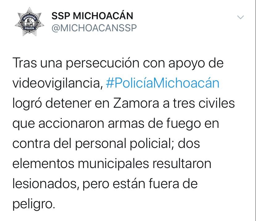 De esta manera, la SSP ratifica su compromiso de mantener acciones firmes contra todo hecho que atente contra la seguridad de las y los michoacanos.