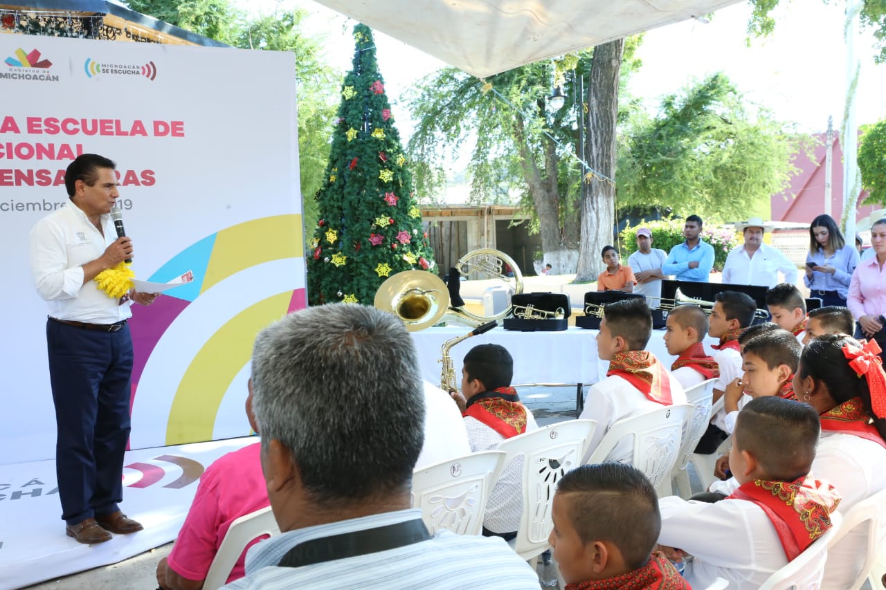 «Dar oportunidad a nuestras niñas y niños de aprender un instrumento musical es lo mejor que podemos hacer, si tenemos más músicos, habrá menos problemas en las comunidades y en la sociedad», dijo el gobernador en la plaza principal de Tuzantla.