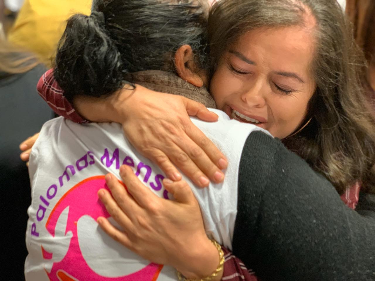 Al cumplirse el tercer aniversario de este programa, que ha permitido a ocho mil 244 madres y padres de familia volver a abrazar a sus hijas, hijos y familias conformadas por ellos, al reencontrarse en Estados Unidos luego de varias décadas sin verse, las Palomas Mensajeras se fundieron en amorosos abrazos, buscando recuperar el tiempo perdido.