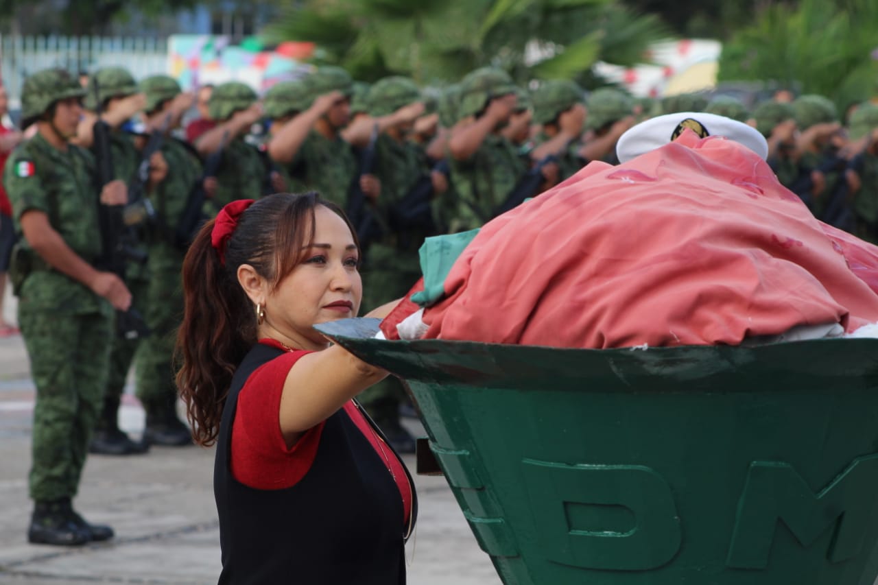 Ante autoridades civiles, militares y navales, la alcaldesa exhortó a las escuelas primarias “12 de Octubre”, “21 de Mayo”, “Nueva Creación”, “Innovación Educativa”, “18 de Marzo”, “Lázaro Cárdenas”, “Luis Donaldo Colosio”, “María Michelena” y Telesecundaria “Benito Juárez”, a custodiar la enseña nacional, ya que simboliza la independencia, honor y patria del país.