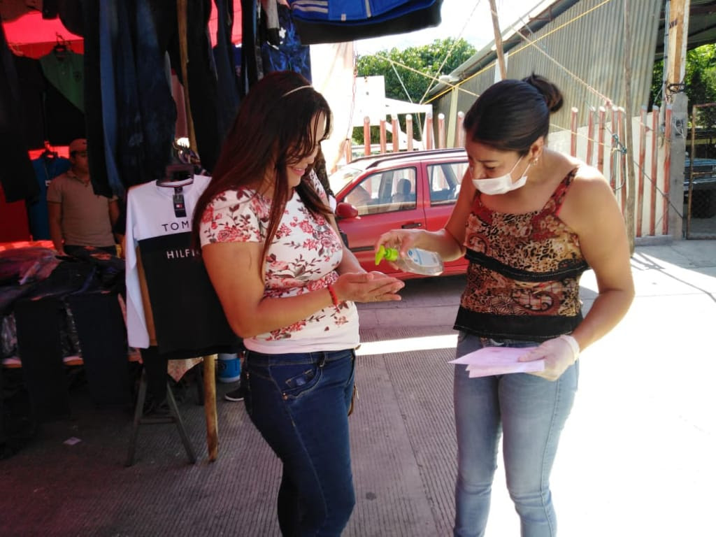 También en negocios y el mercado municipal se entrega gel antibacterial, cloro y jabón a los comerciantes.