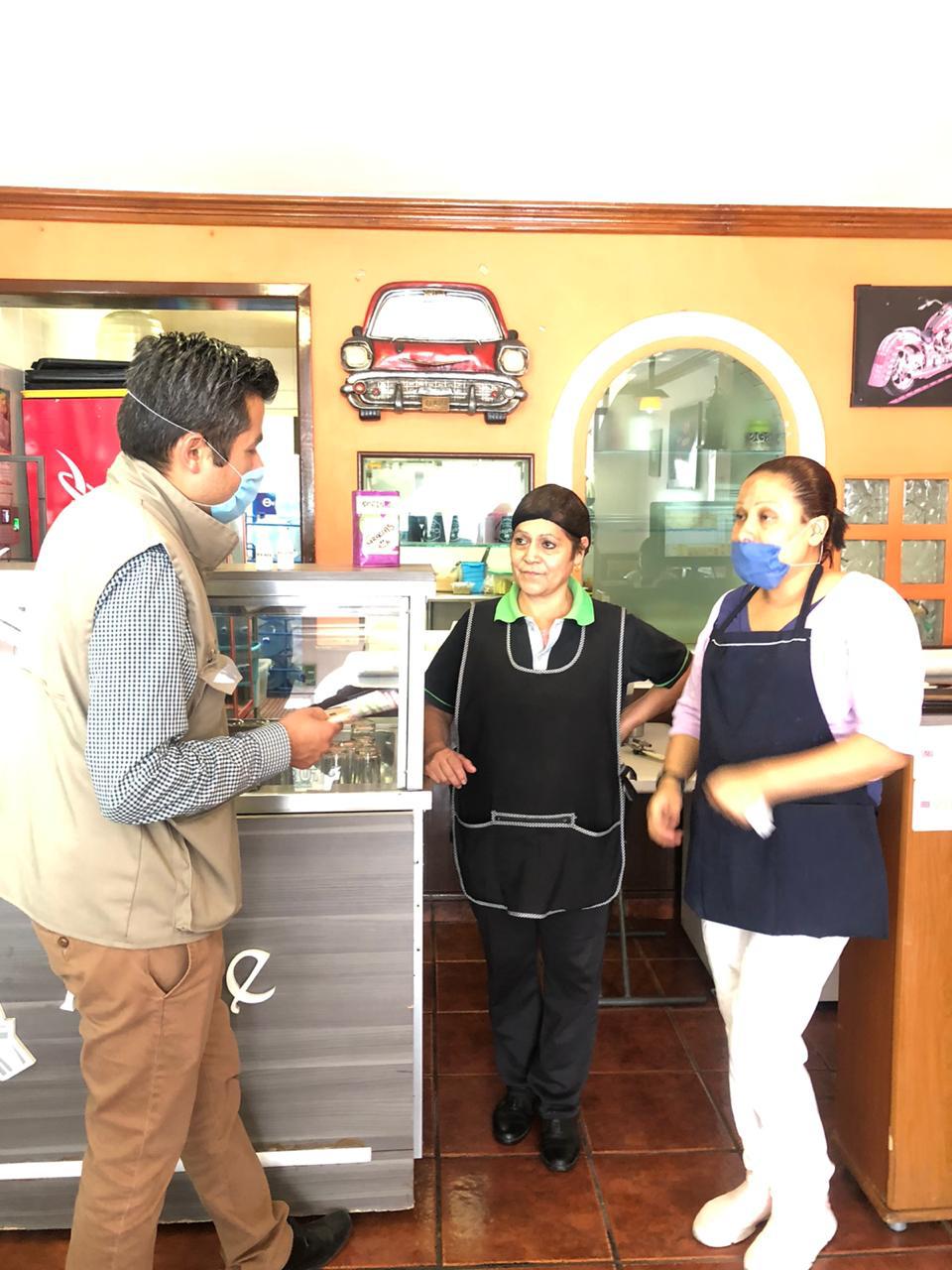 Durante estas actividades se entregan trípticos sobre el manejo higiénico de los alimentos en situaciones de emergencia a los locales de comida, en donde se les explica que deben lavar y tallar las frutas y verduras, al igual que desinfectar los mismos antes de la preparación de los platillos. Al mismo tiempo se realizan pláticas de orientación a los trabajadores de estos lugares, sobre las medidas que deben de tener para contener el virus, como la sana distancia y el lavado frecuente de manos.