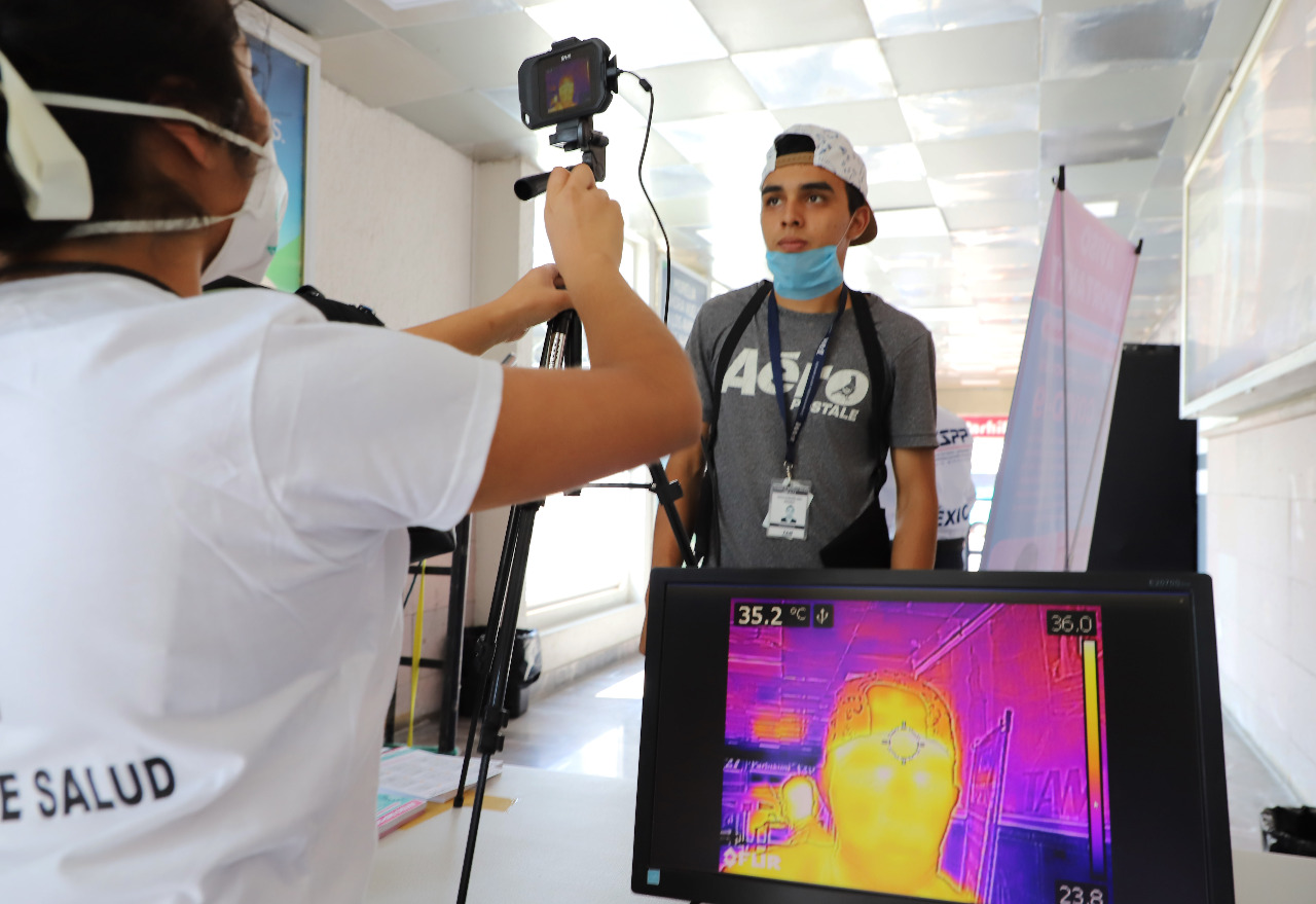 Estas cámaras muestran en pantalla una imagen de la radiación calorífica que emite el cuerpo de las personas, si la medición de temperatura sale de los rangos normales, se vuelve a revisar, pero ahora con un termómetro frontal y se pasa a la persona a un Módulo de Enfermedades Respiratorias habilitado en la TAM.