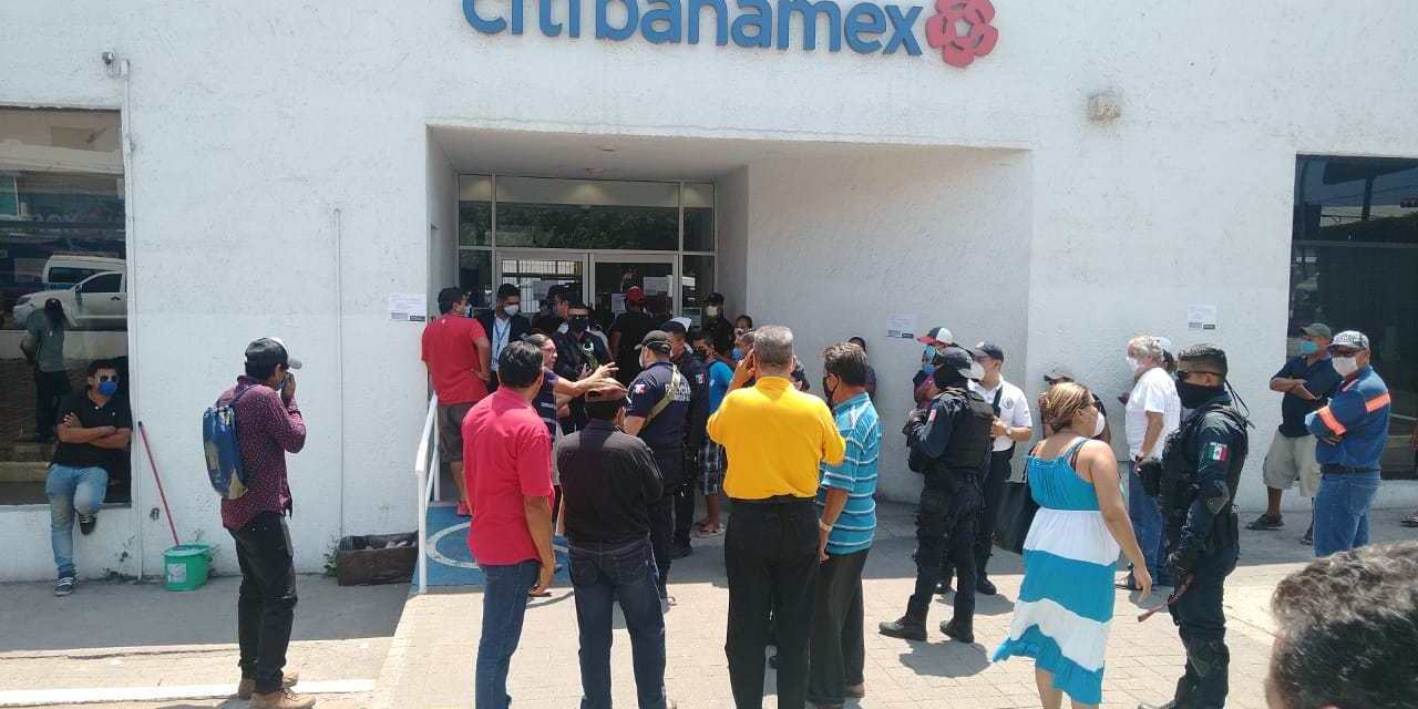 Exigen a la autoridad en educación, en su defecto, cambien las cuentas de nuestros cheques a otro Banco, basta ya de estar padeciendo este tipo de trato indigno por empresarios a los cuales, por lo visto, no les importa la integridad física de sus clientes. Todo por no acatar las medidas preventivas de la sana distancia entre otras medidas preventivas implementadas por la Secretaría de Salud Federal, la autoridad municipal a través de reglamentos, el martes procedió a clausurar temporalmente la sucursal bancaria del Banco Nacional de México ubicado sobre avenida Lázaro Cárdenas en pleno centro de esta ciudad.