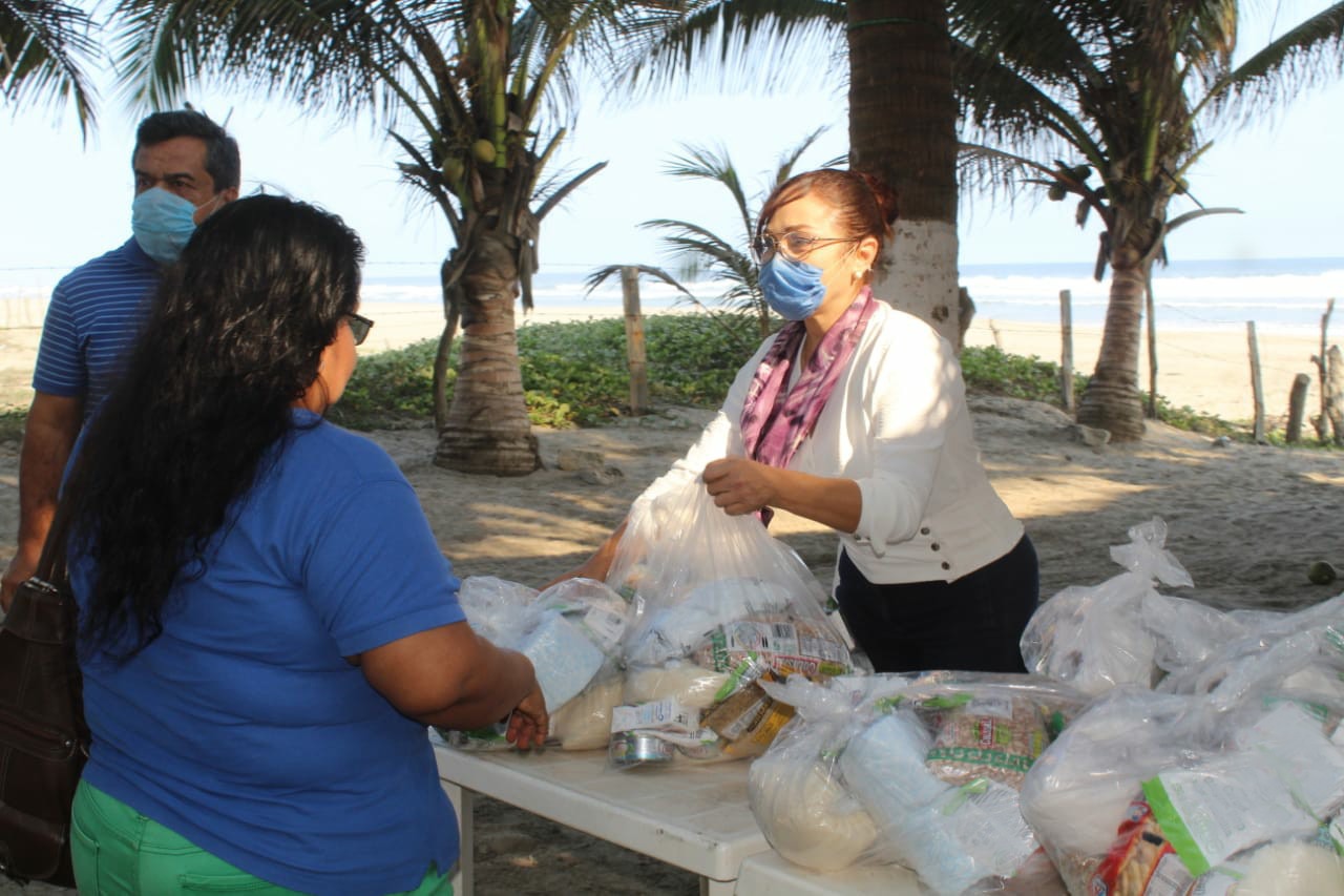 Lázaro Cárdenas, Michoacán; a 01 de mayo de 2020.- La presidenta municipal María Itzé Camacho Zapiain encabezó la entrega de paquetes de despensas a 50 enramadas de Barra de Pichi y de la tenencia de Playa Azul, las cuales, a causa de la pandemia del Covid-19 tuvieron que suspender sus servicios.