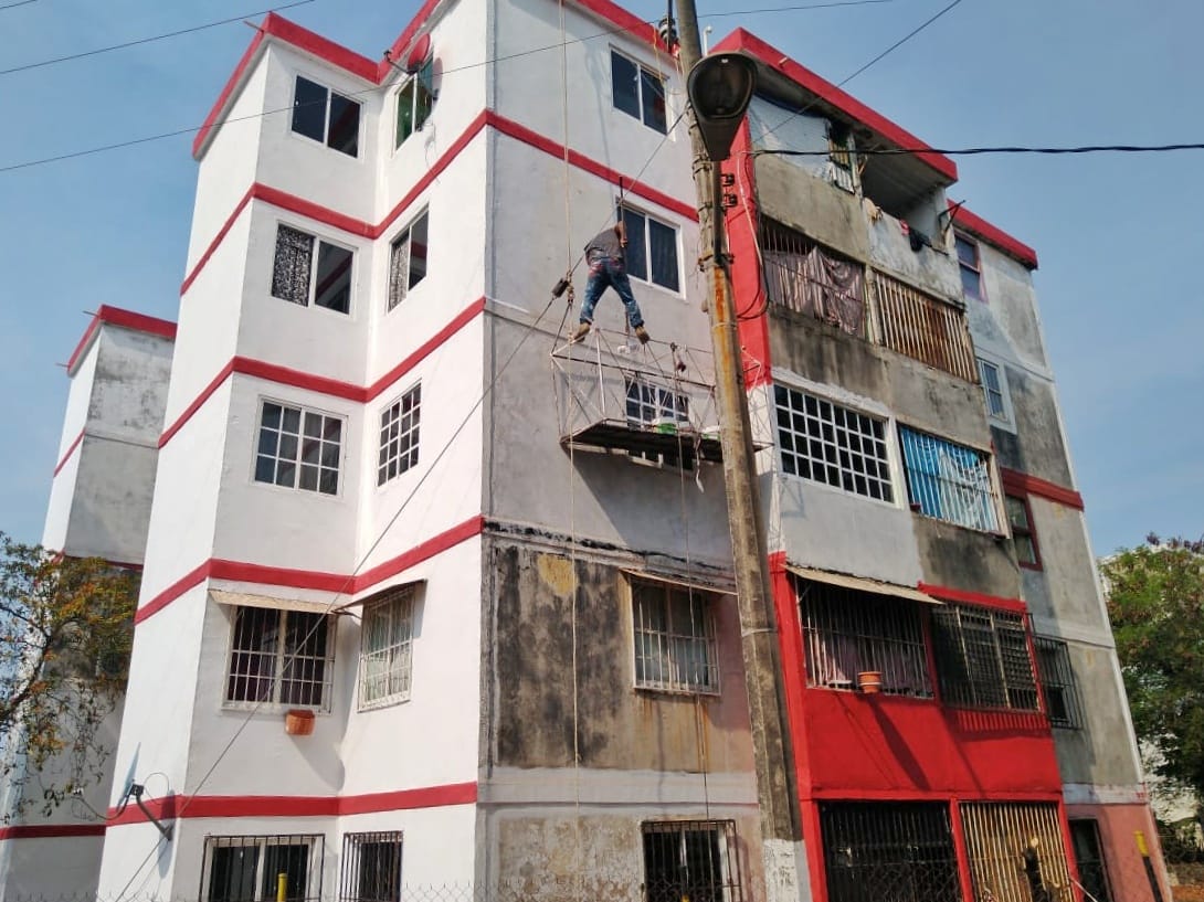 El Oficial Mayor, Ulises Emir Barajas Zaragoza, explicó que restan por mejorar su fachada otros 14 edificios más, con lo cual resultarían beneficiadas un total de 420 familias con viviendas más dignas.