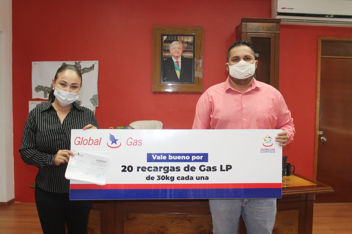 Por su parte, el gerente de la empresa gasera, Julio César González Granados, hizo la entrega de los vales a Itzé Camacho, indicando que este apoyo podrán hacerlo válido en cualquier momento que se requiera.