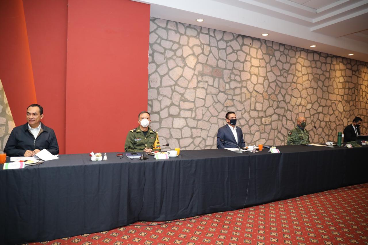 En la reunión participaron el secretario de Seguridad Pública, Israel Patrón Reyes; el fiscal general del estado, Adrián López Solís; el comandante de la 21 Zona Militar, Sergio Armando Barrera Salcedo; el comandante de la 43 Zona Militar, Darío Ávalos Pedraza.