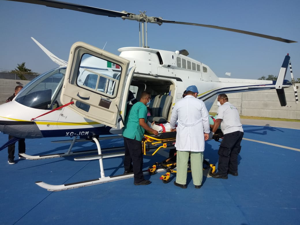 Morelia, Michoacán, a 4 de junio de 2020.- La Secretaría de Salud de Michoacán (SSM), a través del Centro Regulador de Urgencias Médicas (CRUM), realizó el traslado aéreo de una paciente embarazada, de Apatzingán a Morelia.