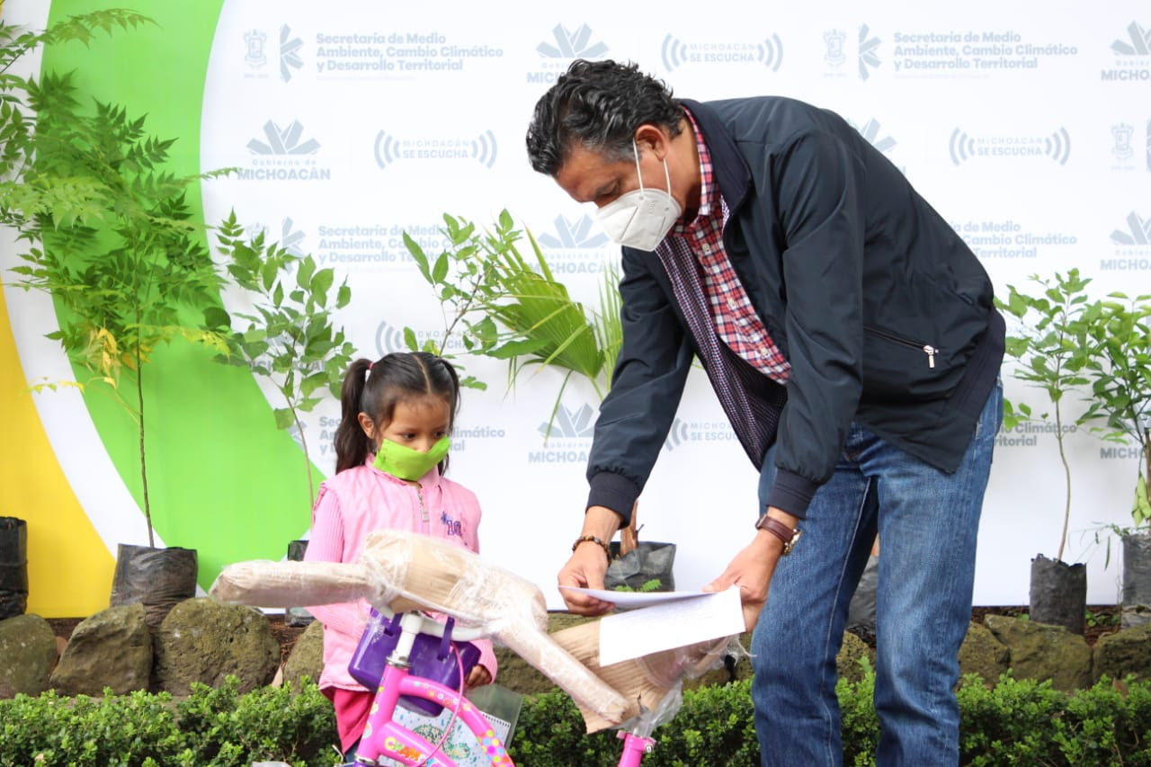 • Las niñas recibieron una bicicleta y una tablet respectivamente; el premio al tercer lugar será entregado directamente en Uruapan.