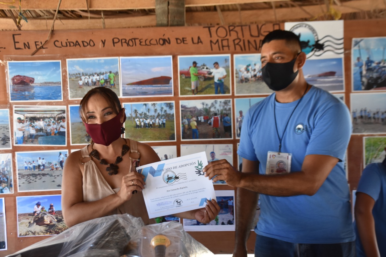 Cabe destacar que durante su visita al Campamento Tortuguero de El Habillal, Itzé Camacho recibió un reconocimiento por haber adoptado dos nidos de tortugas, además de participar, bajo todas las medidas sanitarias, en la liberación de crías de quelonio.