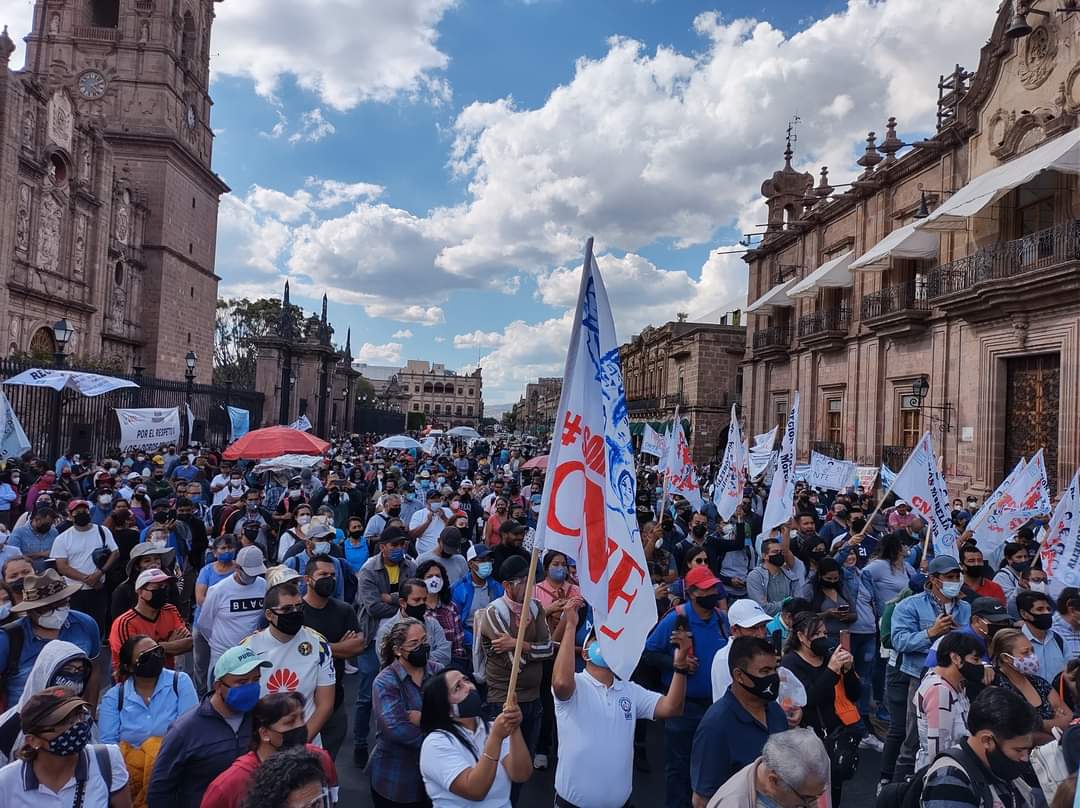 Maestros de la Coordinadora Nacional de Trabajadores de la Educación (CNTE) marcharon en Morelia para exigir mejores condiciones laborales; en la marcha participaron profesores de los estados de Michoacán, Durango, Jalisco, Sonora, Zacatecas, Veracruz y Colima particularmente, los maestros michoacanos pidieron que los trabajadores con plazas estatales tengan los mismos beneficios que los federales.