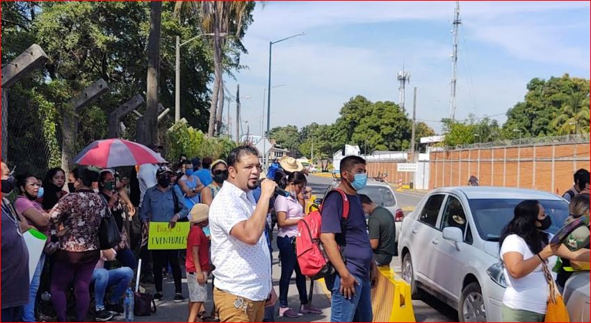 *Se plantan con mantas y pancartas en el acceso al malecón al paso del Presidente de México que visita el puerto Michoacano.