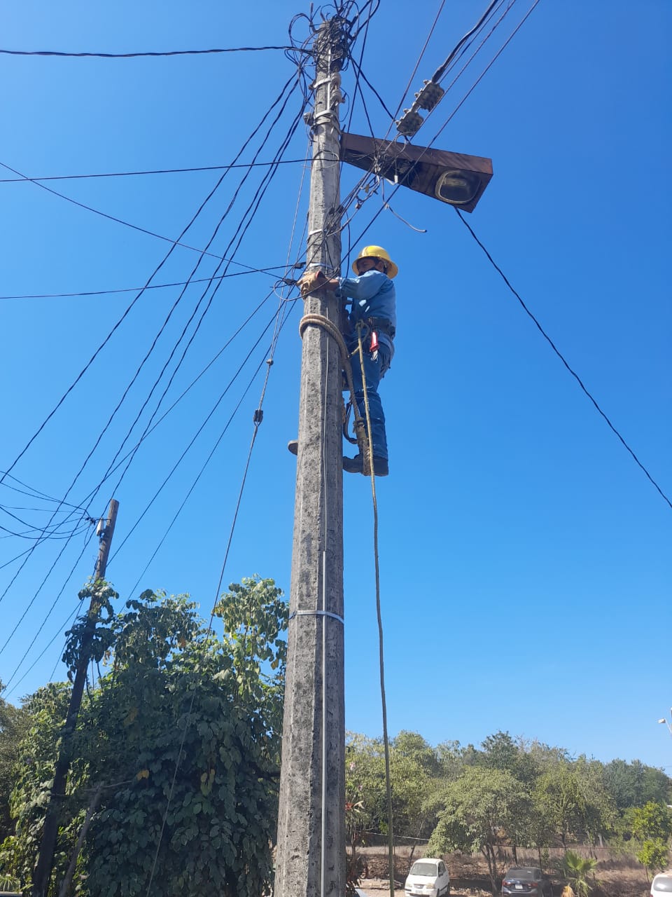 Joaquín Soria PalmerÍn, jefe del Departamento, indicó que los trabajos se desarrollan con el apoyo de los colonos, quienes donaron algunos tubos para la creación de los brazos de soporte donde se coloca la carcasa del modelo OV-15 de los focos de tecnología LED.