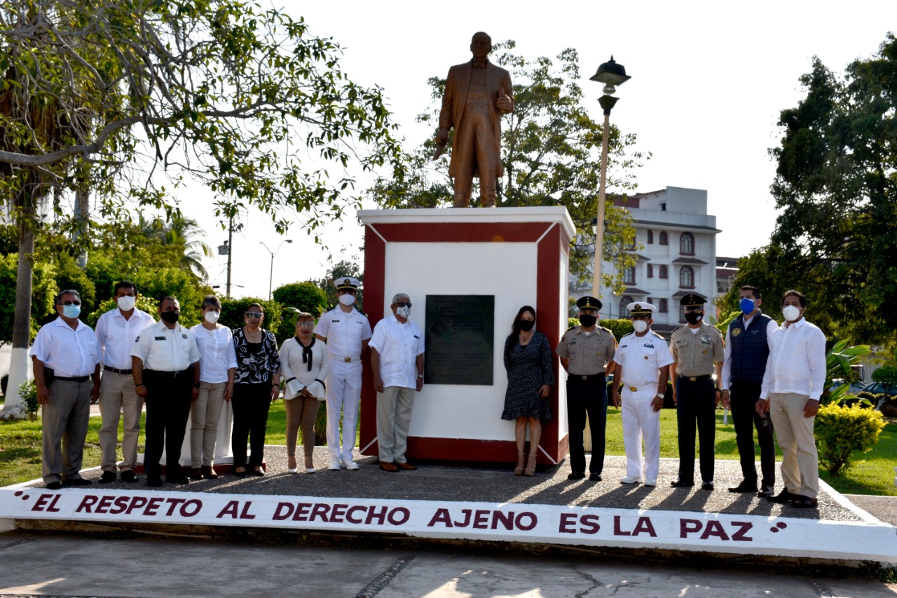 Lázaro Cárdenas, Michoacán; a 21 de marzo de 2021.- Autoridades municipales, además mandos civiles, militares y navales, conmemoraron el CCV Aniversario del Natalicio de Benito Juárez García, el Benemérito de las Américas.