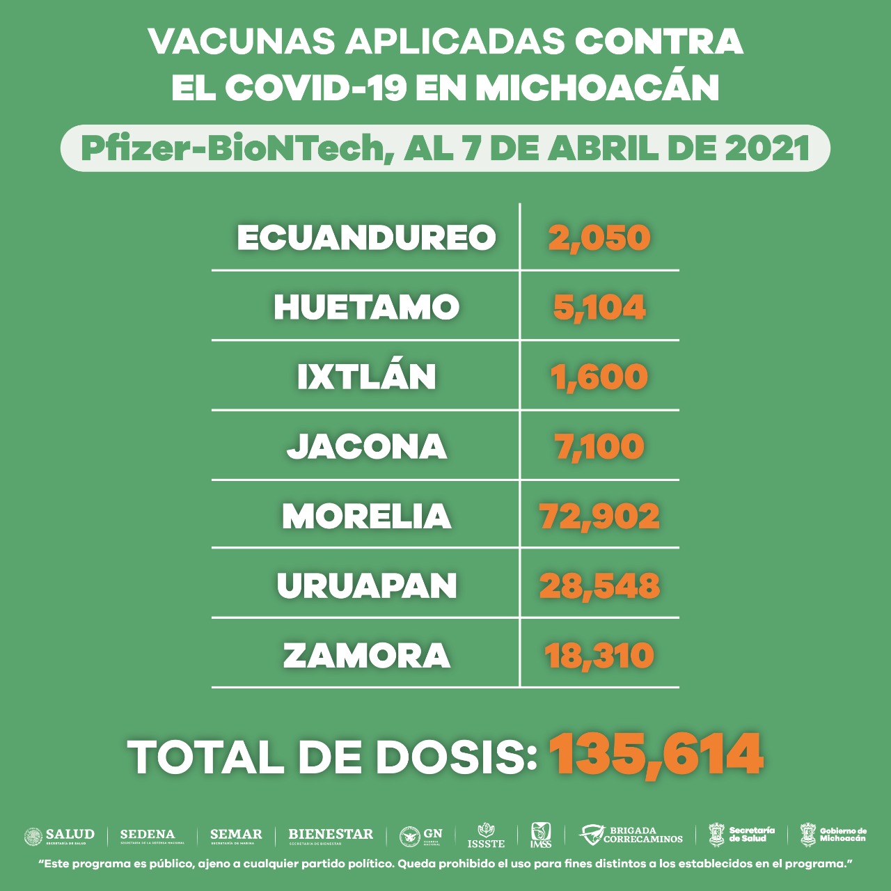 A quienes aún no reciben la vacuna, se les exhorta a que se registren en https://mivacuna.salud.gob.mx/ para recibir su dosis anti COVID-19 de acuerdo con la calendarización programada por la Federación.