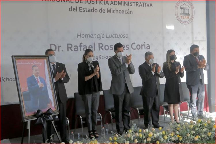 Morelia, Michoacán, 19 de abril de 2021. Integrantes del Tribunal de Justicia Administrativa del Estado de Michoacán (TJAM) rindieron esta mañana un homenaje luctuoso en memoria del magistrado Rafael Rosales Coria (1961-2021), quien falleció el 29 de marzo anterior.