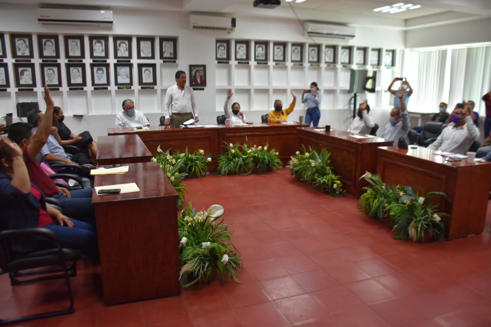 A la sesión, asistió el síndico Miguel Ángel Peraldí Sotelo; los regidores Minerva Vázquez Salas, Felimón Acosta Aguirre, Bertha Alicia García Rico, Mario Adrián Pérez Ibarra, Rosana Alonso Flores, Margarito Ortiz Vargas, Jesús Mayoral Zamora, Guadalupe Chan Panti y José Ángel Polanco Sevilla.