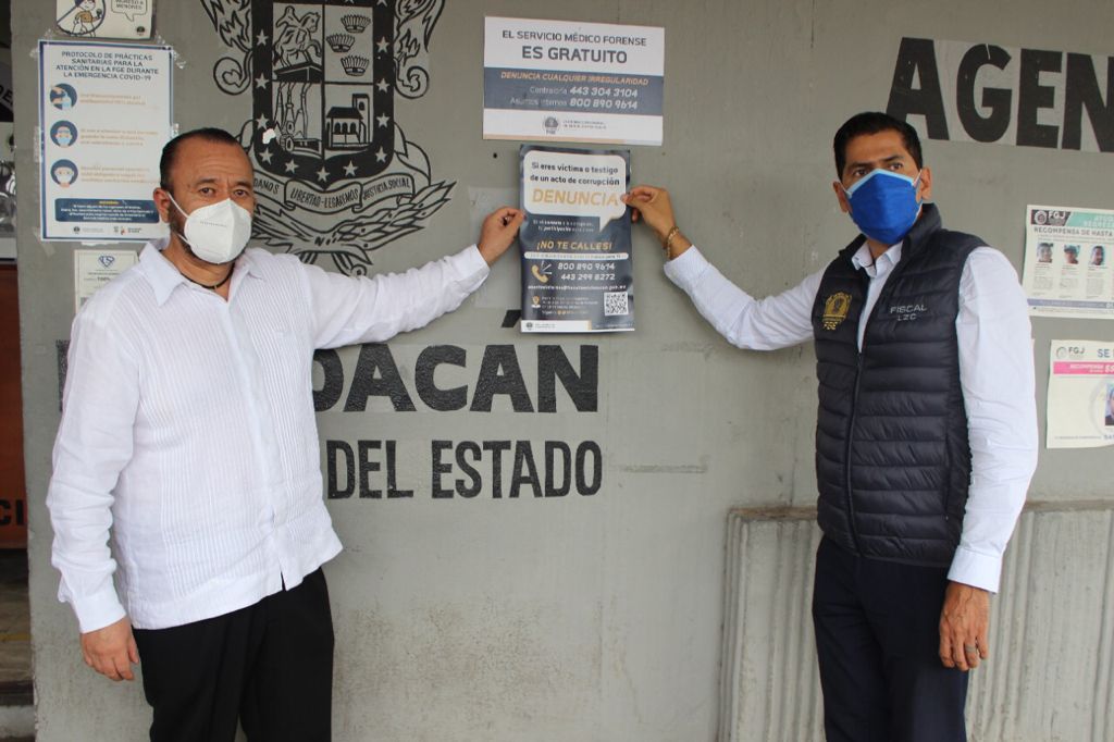 En el marco de este ejercicio se realizó la colocación de carteles para la difusión de la campaña contra actos de corrupción. La FGE reitera su compromiso de garantizar que las y los servidores públicos se conduzcan bajo los principios de honestidad, respeto y legalidad, para dar certeza a la ciudadanía respecto a los procesos de procuración de justicia.