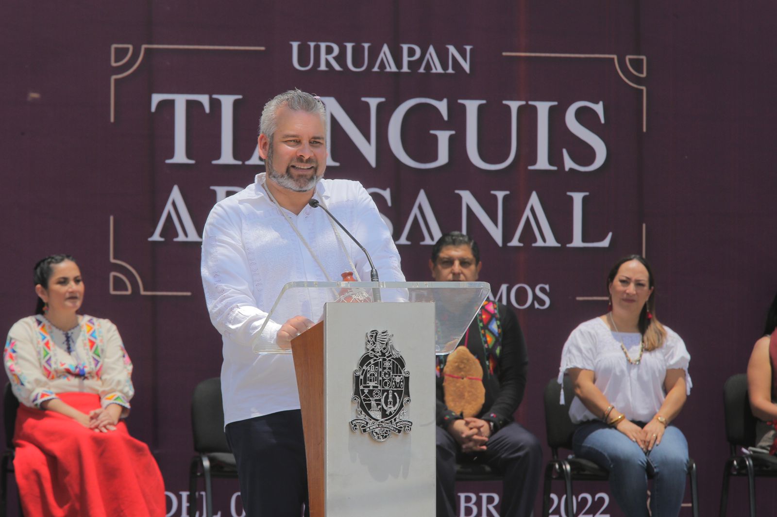Uruapan, Michoacán, 10 de abril del 2022.- El gobernador Alfredo Ramírez Bedolla afirmó que en la cultura y el arte las y los michoacanos tienen las bases para impulsar el desarrollo y pacificación del estado, por lo que reiteró su compromiso de promover y proteger del plagio las tradiciones y riquezas de la entidad.