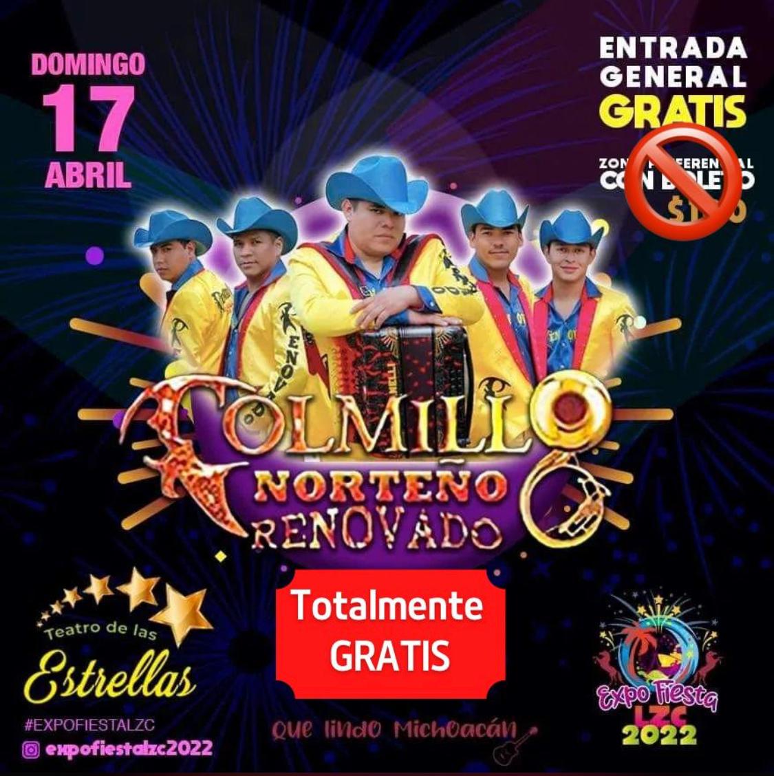 Hoy por cortesía de la Q.F.B María Itzé Camacho Zapiain presidenta municipal, el evento de Colmillo Norteño totalmente gratis para toda la familia, este domingo 17 de abril.