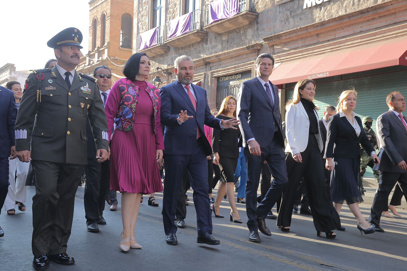 Además de la presidenta de la Mesa Directiva del Congreso del Estado, Adriana Hernández Íñiguez; el comandante de la XXI Zona Militar, Francisco Javier Zubia González; el rector de la Universidad Michoacana de San Nicolás de Hidalgo, Raúl Cárdenas Navarro, entre otros.