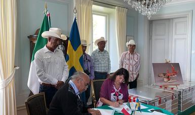 Estocolmo, Suecia, 3 de junio de 2022.- Este viernes en la Embajada de México en Suecia, se formalizó la entrega al gobierno mexicano y al pueblo yaqui de una colección de bienes culturales que incluye el “Maaso Koba” (Cabeza de Venado), figura sagrada de los ocho pueblos que conforman la Nación Yaqui, por parte del gobierno del Reino de Suecia, a través del Museo de la Cultura del Mundo, ubicado en Gotemburgo.