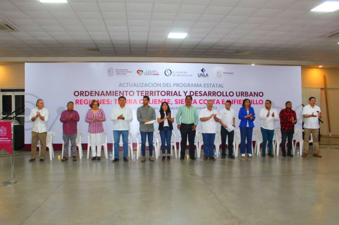 Cd. Lázaro Cárdenas, Mich., a 09 de febrero del 2023.- Este jueves el municipio de Lázaro Cárdenas fue sede del Taller Regional “Actualización Programa Estatal de Ordenamiento Territorial y Desarrollo Urbano”, el cual fue dirigido a las regiones de tierra caliente, sierra costa e Infiernillo; promovido por la Secretaría de Desarrollo Urbano y Movilidad en coordinación con el H. Ayuntamiento de Lázaro Cárdenas, El Colegio de Michoacán y la UNLA.