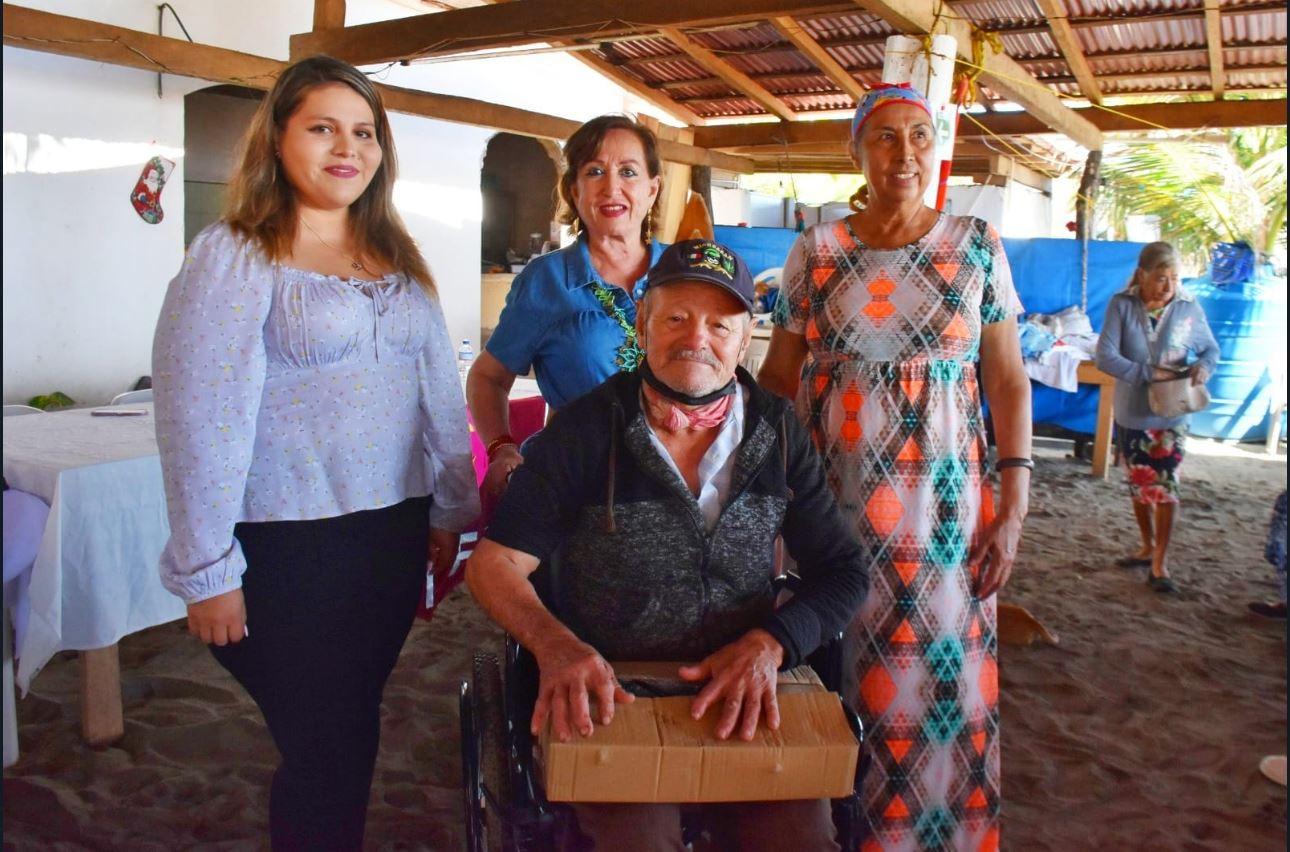 Cd. Lázaro Cárdenas, Mich., a 28 de febrero del 2023.- Continuando con la atención y entrega de apoyos en comunidades, este martes el Sistema DIF Municipal llevó a cabo la entrega de aparatos funcionales en playa La Soledad, donde adultos mayores fueron beneficiados con 3 sillas de ruedas, 3 andaderas y 4 bastones.