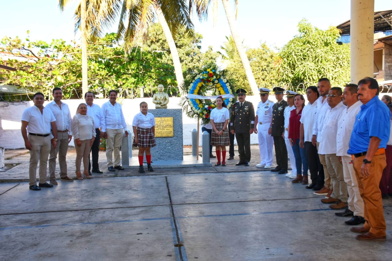 Durante el acto cívico acompañó la escolta y guerra de banda del 82°, Batallón de Infantería; así como el Comandante de guarnición militar de plaza, General Brigadier D.E.M. Ignacio García Brito; el Comandante del 82º batallón de infantería, Coronel de Infantería D.E.M. Carlos Alberto Soto; el Capitán de puerto regional de Lázaro Cárdenas, Contralmirante C.G. D.E.M. Julio Arturo Gorbea Barcelata, en representación de la XIV Zona Naval Militar, Vicealmirante C.G.D.E.M. Sergio Flavio Zepeda Aguirre y el capitán de Corbeta de Cuerpo de Infantería de Marina, Rodolfo Herrera Isidoro.