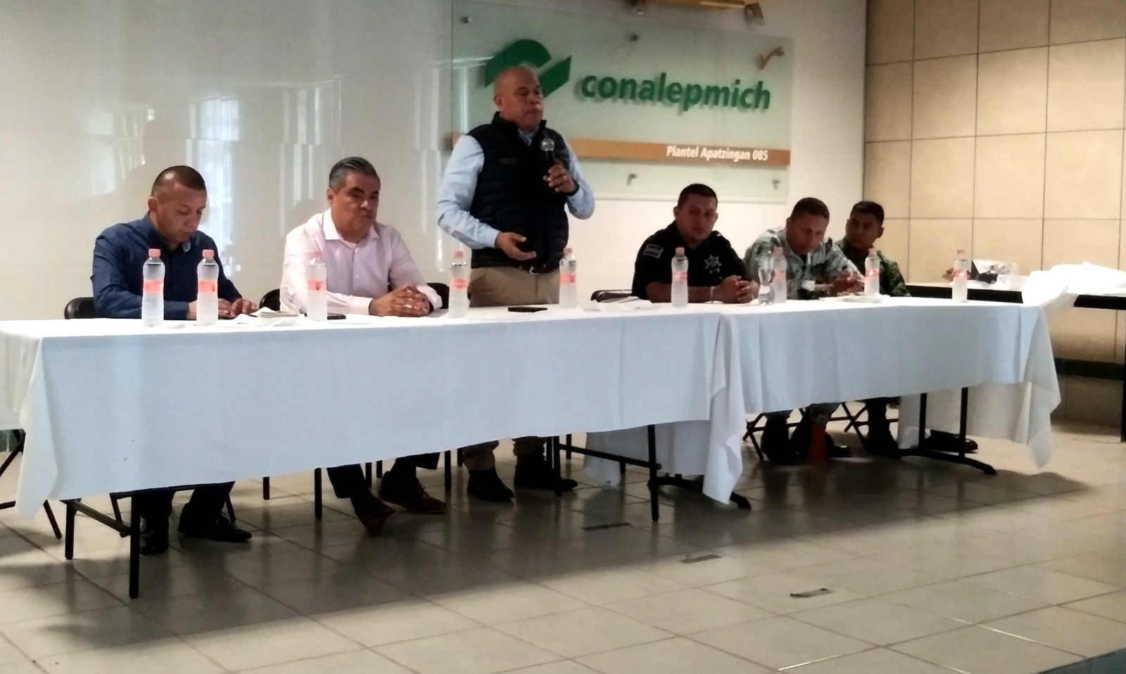 La actividad realizada en el Colegio Nacional de Educación Profesional Técnica (Conalep), es en cumplimiento a los acuerdos establecidos en las mesas de seguridad regional, en las que ha tenido participación el fiscal de la Región Apatzingán, José Álvarez Martínez, además de autoridades de los tres niveles de gobierno.