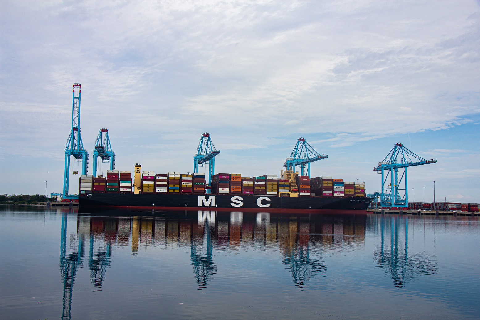 Puerto Lázaro Cárdenas, 31 de julio de 2023.- El buque MSC Taylor de la línea naviera Mediterranean Shipping Company atracó en el Puerto de Lázaro Cárdenas en las instalaciones de la Terminal Especializada de Contenedores II, operada por la empresa APM Terminals.
