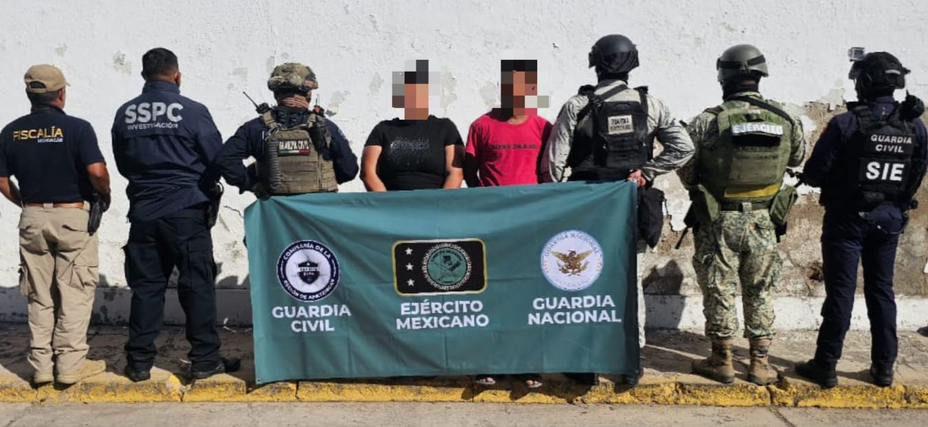 Posteriormente fueron detenidos una mujer y un hombre, quienes viajaban en una unidad marca Italika con modificaciones en los medios de identificación. Tras una revisión, a los ahora indiciados se les localizaron aproximadamente 900 gramos de metanfetamina, así como hierba verde seca, con las características propias de la mariguana.