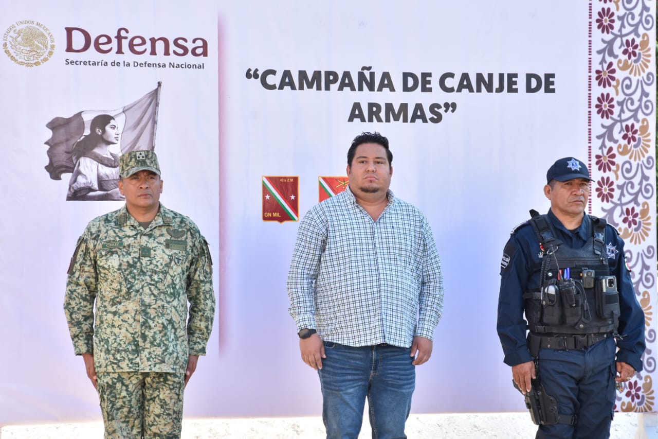 Cd. Lázaro Cárdenas, Mich., a 31 de Enero del 2025.- La Secretaría de la Defensa Nacional (SEDENA) en coordinación con el Gobierno Municipal, puso en marcha este viernes la Campaña de Desarme en Lázaro Cárdenas “Si al Desarme, Si a la Paz”; la cual tiene como objetivo fomentar el desarme voluntario, donde los ciudadanos podrán hacer entrega de las armas que poseen a cambio de un estímulo económico.