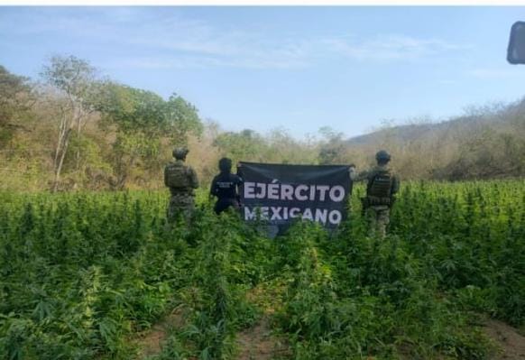 Arteaga, Michoacán, 22 de febrero de 2025.- Agentes de las secretarías de Seguridad Pública (SSP), de la Marina (Semar) y de la Defensa Nacional (Defensa) localizaron y destruyeron en el municipio de Arteaga dos plantíos de hierba verde con las características propias de la mariguana.