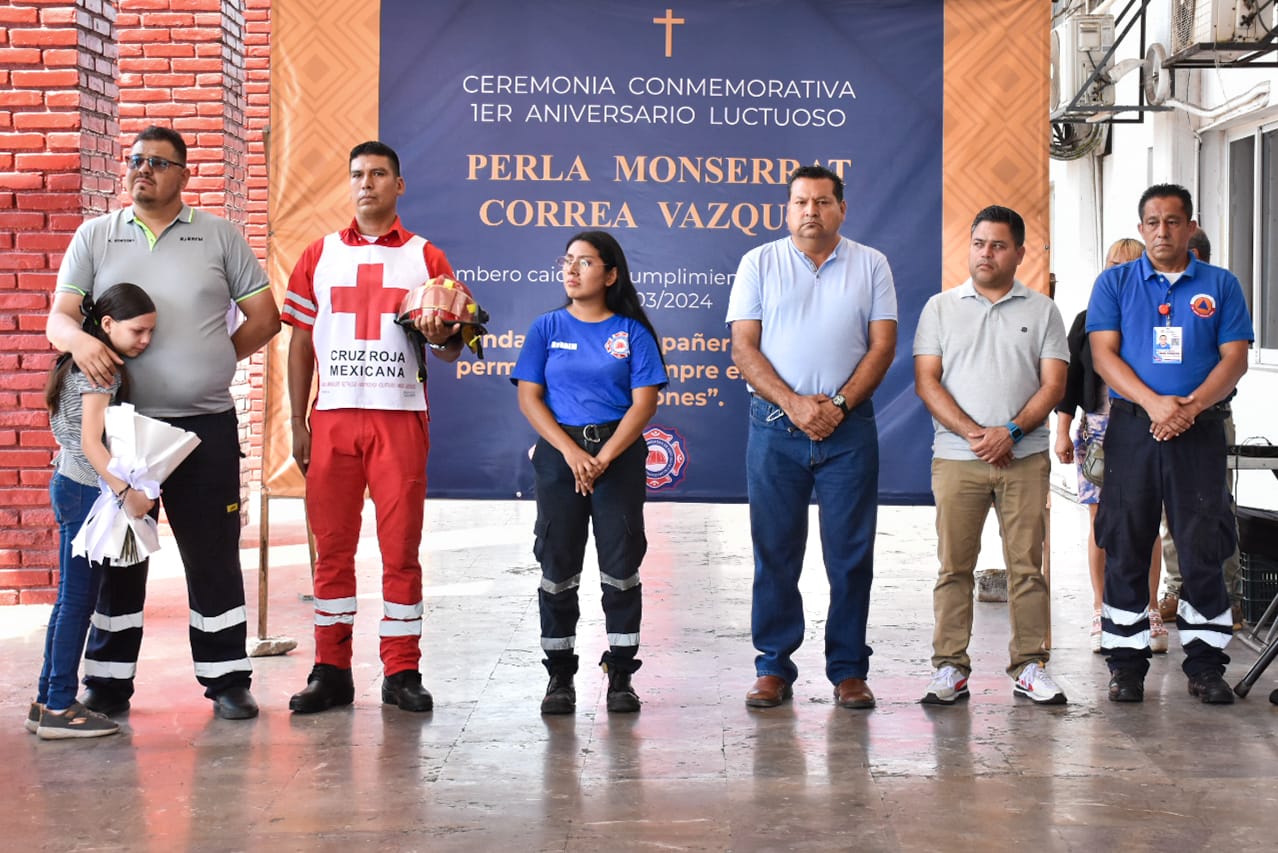 Cd. Lázaro Cárdenas, Mich., a 05 de marzo de 2025.- Al cumplirse un año de que la socorrista Perla Montserrat Correa Vázquez, falleciera en un accidente en la autopista siglo XXI, cuando atendía un llamado de emergencia con Bomberos, Brigadas de Respuesta a Emergencia (BYBREM); este miércoles autoridades, familiares y compañeros la recordaron en un homenaje a su trabajo como rescatista, madre, amiga y esposa.